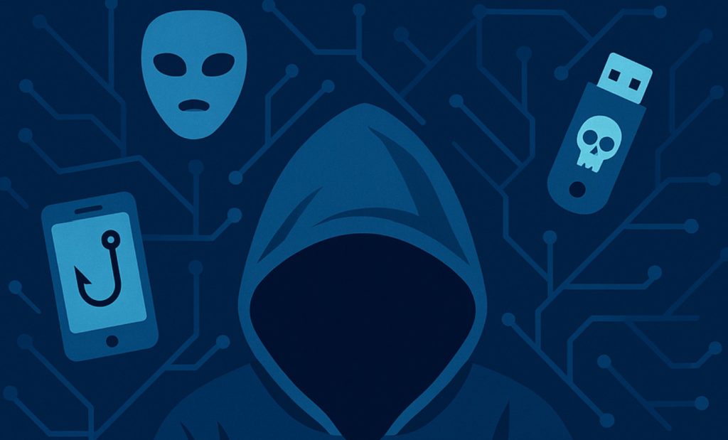 Nejběžnější formou sociálního inženýrství zůstává phishing – podvodné e-maily nebo SMS zprávy, které se tváří jako sdělení od banky, úřadu nebo například doručovací služby. Cílem je přimět uživatele ke kliknutí na odkaz vedoucí na podvrženou stránku, nebo k vyplnění citlivých údajů. Phishingové kampaně se v posledních letech stávají čím dál sofistikovanější a stále častěji cílí i na děti a mladistvé.